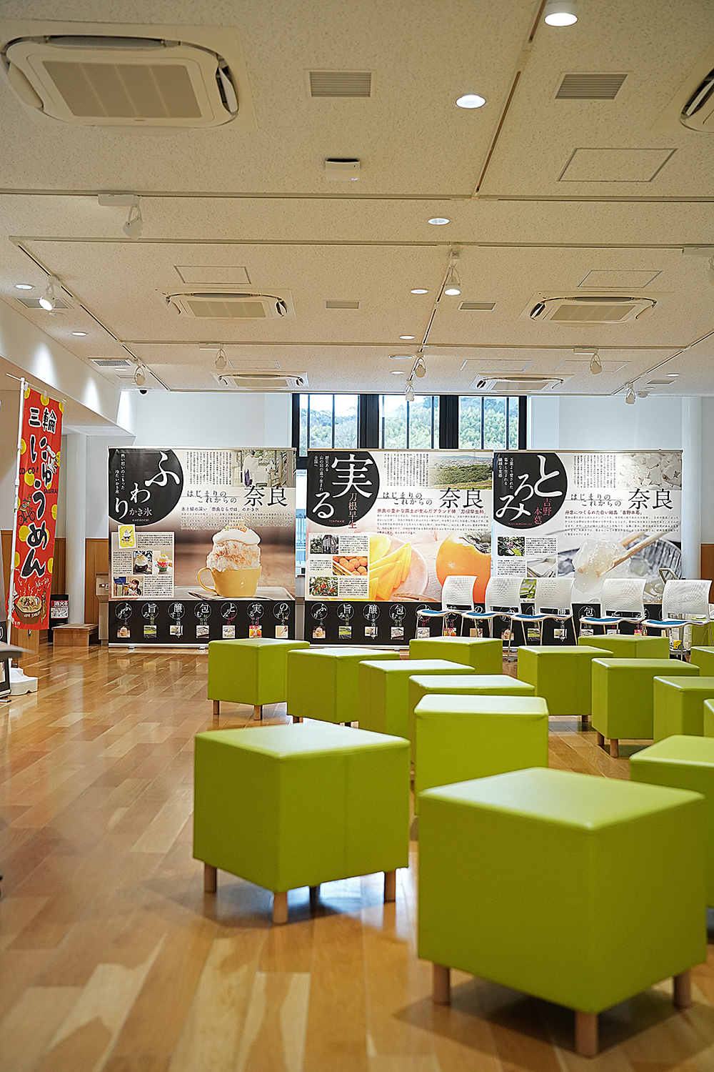 旬のいちごや産直野菜、奈良の味覚が所狭しと並ぶ市場の2階が、今回の会場です。