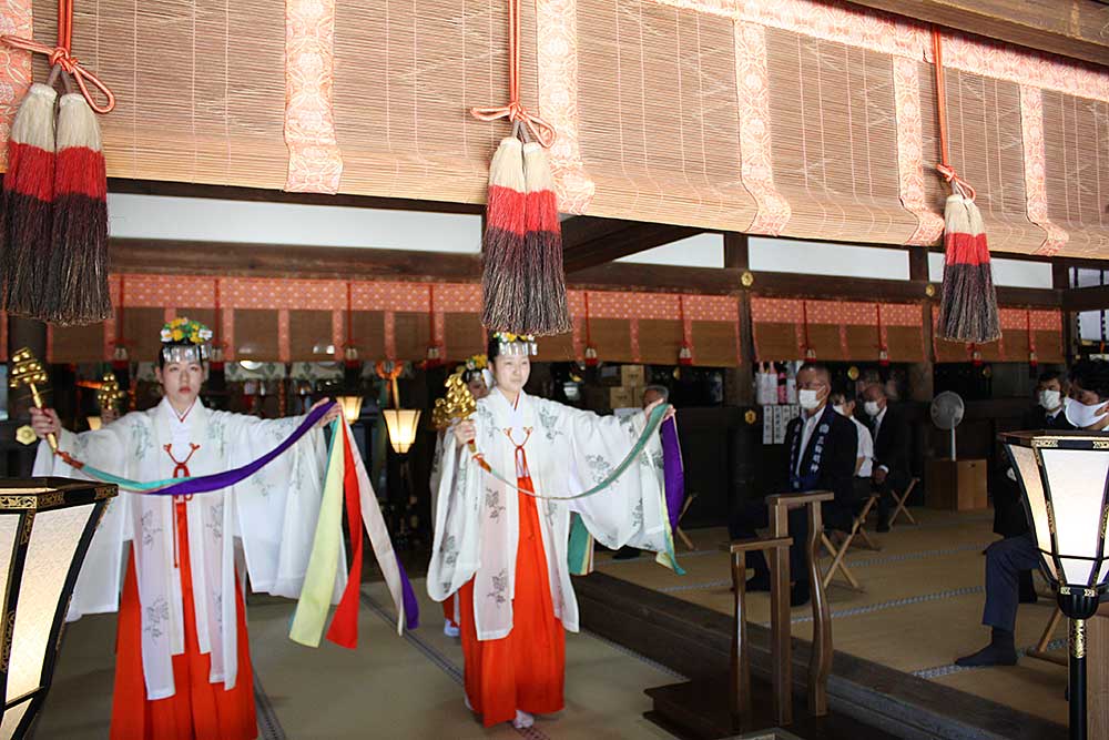 代表者が玉串拝礼を行い、四人の巫女による神楽「浦安の舞」が奉納されました。